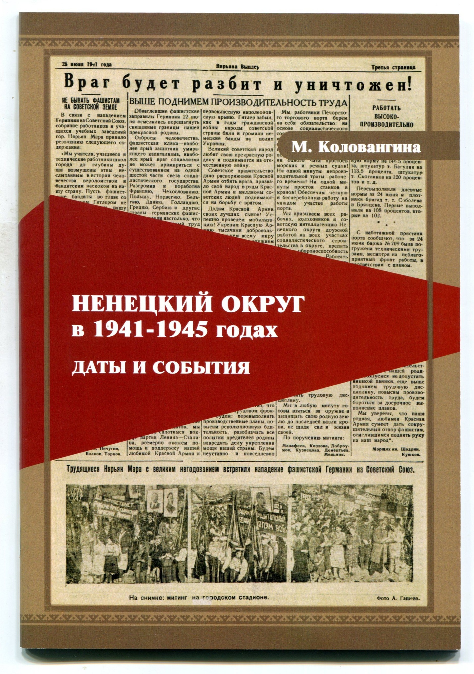 В Год памяти и славы кандидат исторических наук, главный научный сотрудник отдела истории Ненецкого краеведческого музея и автор более 70 научных публикаций по истории НАО в ХХ веке Марина Коловангина выпустила книгу «Ненецкий округ в 1941-1945 годах. Даты и события». В издании представлена хронология событий с 22 июня 1941 по 24 июня 1945 года, которая показывает жизнь тыла в военное лихолетье.