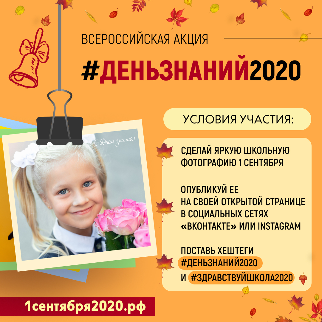 Министерство Просвещения Российской Федерации приглашает учителей, школьников, первоклашек и их родителей принять участие в фотоакции #ДеньЗнаний2020.